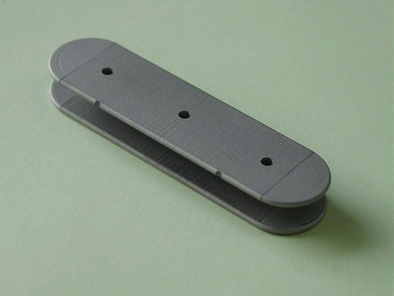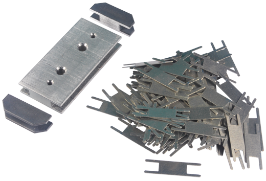 above) Our patented high efficiency 600 Ohm Laminated Steel hum sensor bobbin from our Telecaster bridge pickup.