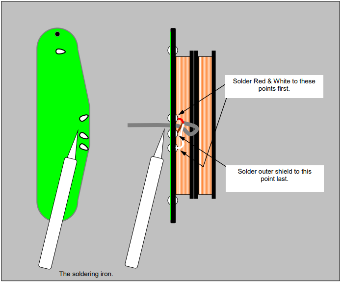 Repeat the above for the second and third points (white and then bare wire of outer shield)