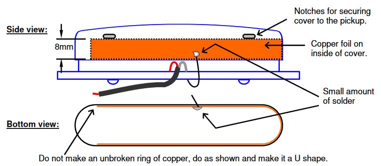 Since it is extremely difficult and expensive to repair bad embedded shielding paint or bad tab connections an economical solution is to apply metal foil shielding over the top of the finish. This and a lot of the other points mentioned in this section are discussed in detail in the shielding section on the Perfect Guitar page of kinman.com