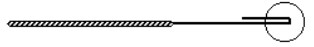 6) Still no result: Test the magnet charges of the pickup as follows. The strength of the magnet can be tested by comparing with other magnets using a small wand made from a cut-off from a wound E string (like in the diagram below). Holding the wand at one end in your fingers put the other end onto the top of the magnet and flick it away from the magnet. In this way you can get a good idea of how strong the magnets are just by feeling how much force is required to make the string depart from the top of the magnet. Compare various magnets and see if the suspect one is less strong than any others that are behaving satisfactorily.