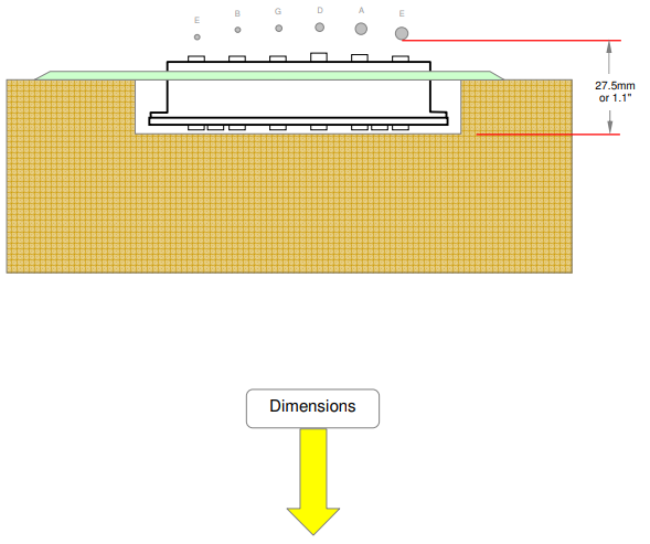 There should be a minimum of 25.5mm (1.1 inch) between the bottom of the unfretted (open)
