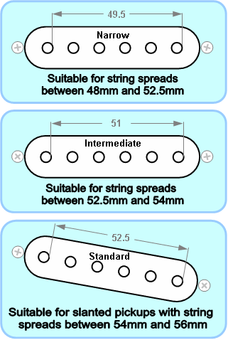All Fender non-noiseless (the N3 is noiseless) and practically all replacement Strat pickups from Duncan, DiMarzio, Lollar, Fralin etc have Standard 52.5mm and unacceptable string/magnet alignment of the neck pickup when used in conjunction with narrow bridges from Fender, Wilkinson and Floyd Rose. Kinman is the only brand of pickups to have this much needed refinement.