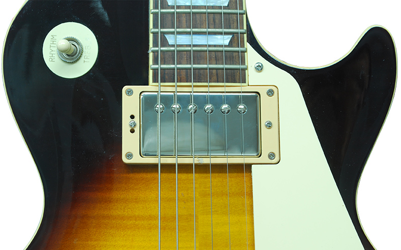 All Gibson and copy humbuckers and P-90 have 49.2mm pole spread for both bridge and neck pickups. This is a compromise to save manufacturing costs and neither are perfect for either position. We believe the neck should have 47.5mm and the bridge should have 50mm poles spreads. Look at the two photos below, the bottom one is standard humbucker pole spread while the one at the top is our new 47.5mm spread, it's easy to see the radical improvement don't you think?